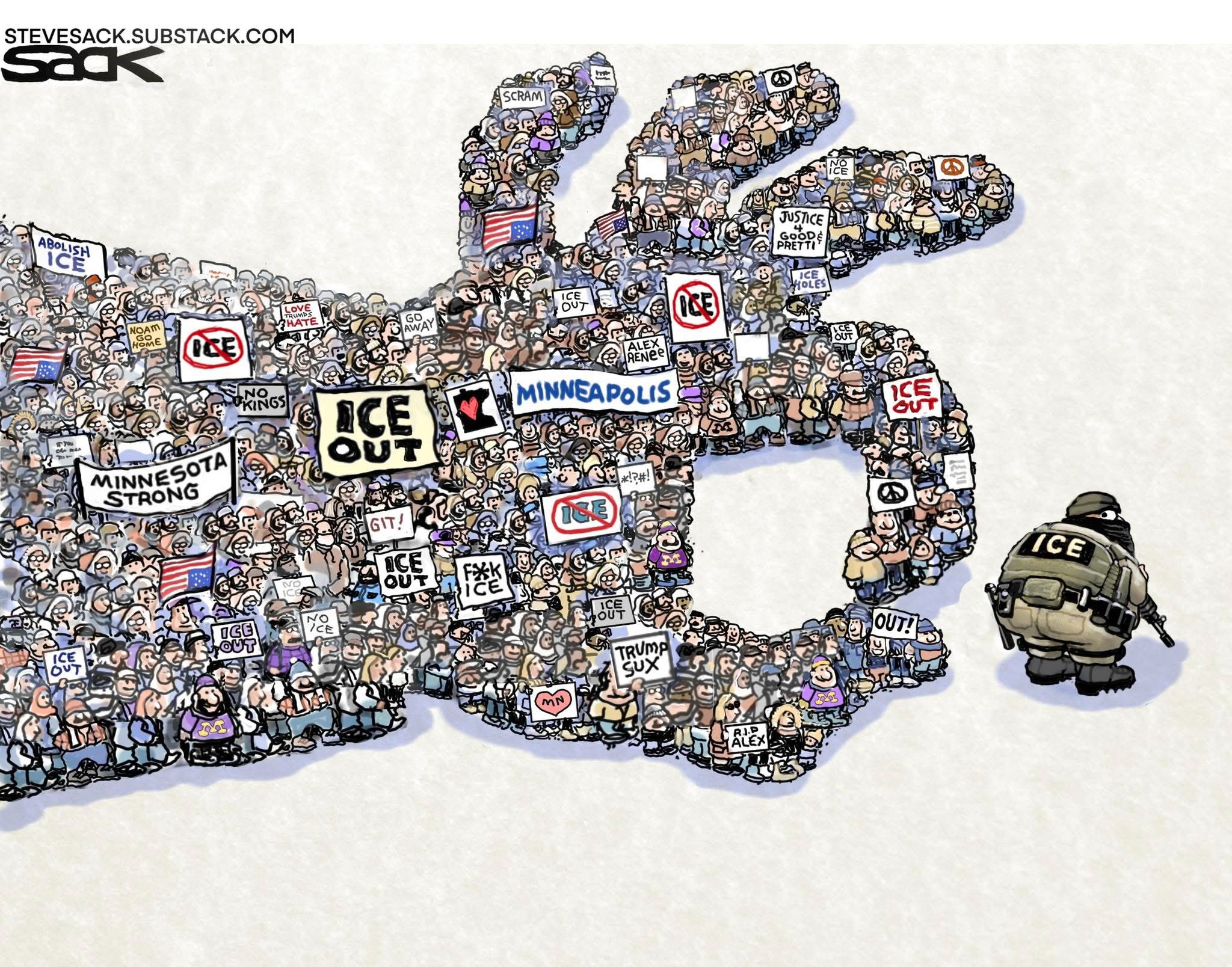 They came out before the sun. The cold met them there. It bit the ears and burned the lungs. Breath came out sharp and white. People walked with their shoulders raised. Gloves were thin. Some hands were bare. They walked in Minneapolis where winter pressed its authority into the city and the streets shone hard and pale as if truth itself had frozen there. The sky stayed low. Buildings watched. Every step required attention. Because ice measures weight, that can end hopeful steps with the law of gravity. There were signs, cardboard stiff with cold, ink dark against the white air. There were loud voices, rising and falling, testing the space between buildings. And there was silent objection, held in posture, in faces set forward, in the refusal to leave without saying a word. People gathered wrapped in coats and resolve, fear moving among them quietly, fear for their children asleep at home, fear for the children walking beside them now, fear for what might come next if no one stood here. Hands stayed close to pockets and to one another. The sanctity of existence stood among them not spoken but felt, in the nearness of bodies, in the shared knowledge that each life here mattered. The streets were sealed with old snow. Still they stood upright, learning how to remain human in the open cold. A boy asked why they were there. His father said some things can’t stay indoors. The cold stayed with them. So did mercy. It moved quietly through the crowd, in small kindnesses, in strangers making room, in voices lifted not to conquer but to witness. Night came early. The city dimmed. Still the line moved forward. They kept going.